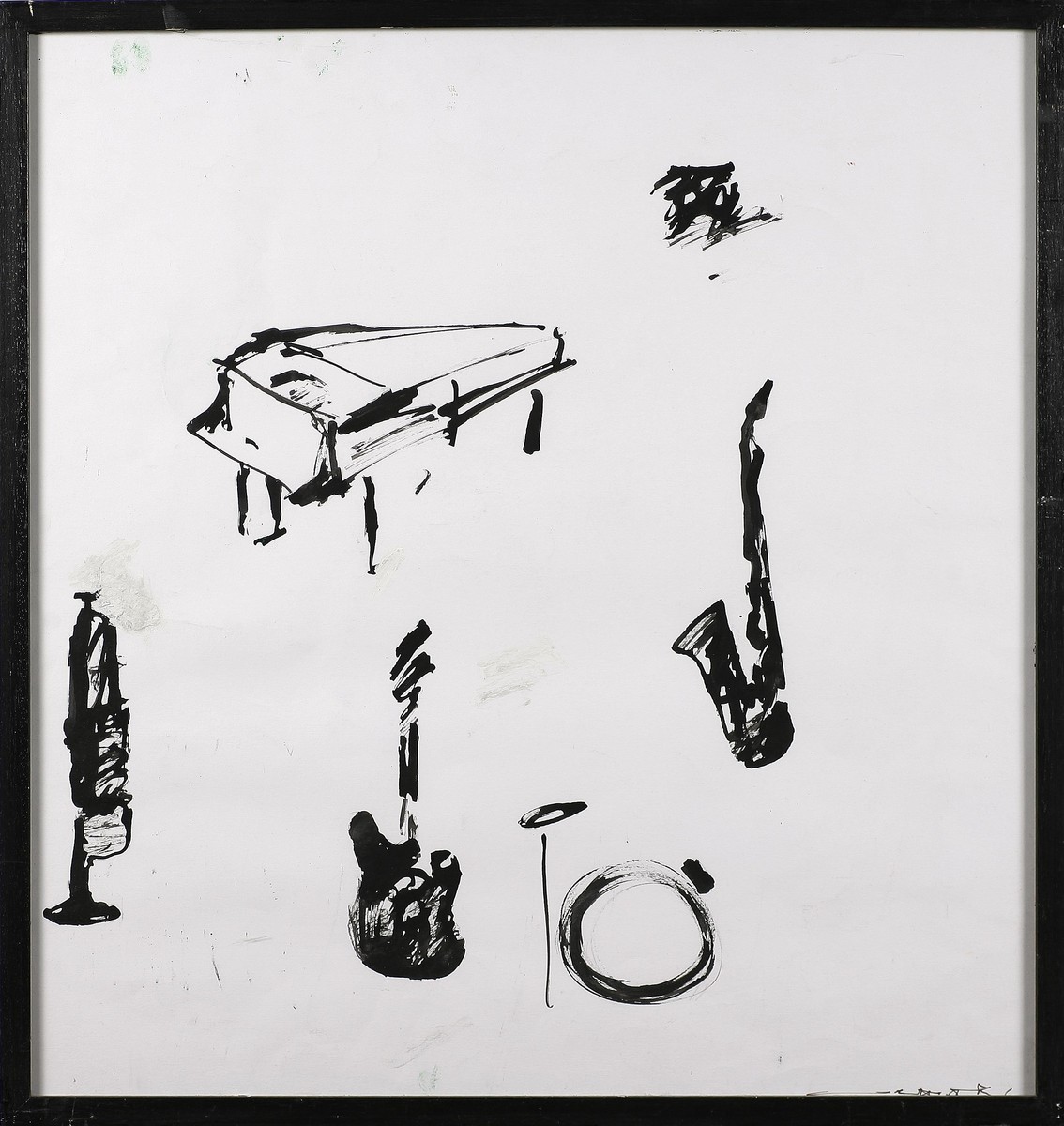 CHIARI GIUSEPPE (1926 - 2007) Strumenti musicali. Olio su cartone. Cm 65,00 x 70,00. Autentica dell'artista su fotografia. Firma in basso a destra. Cornice presente