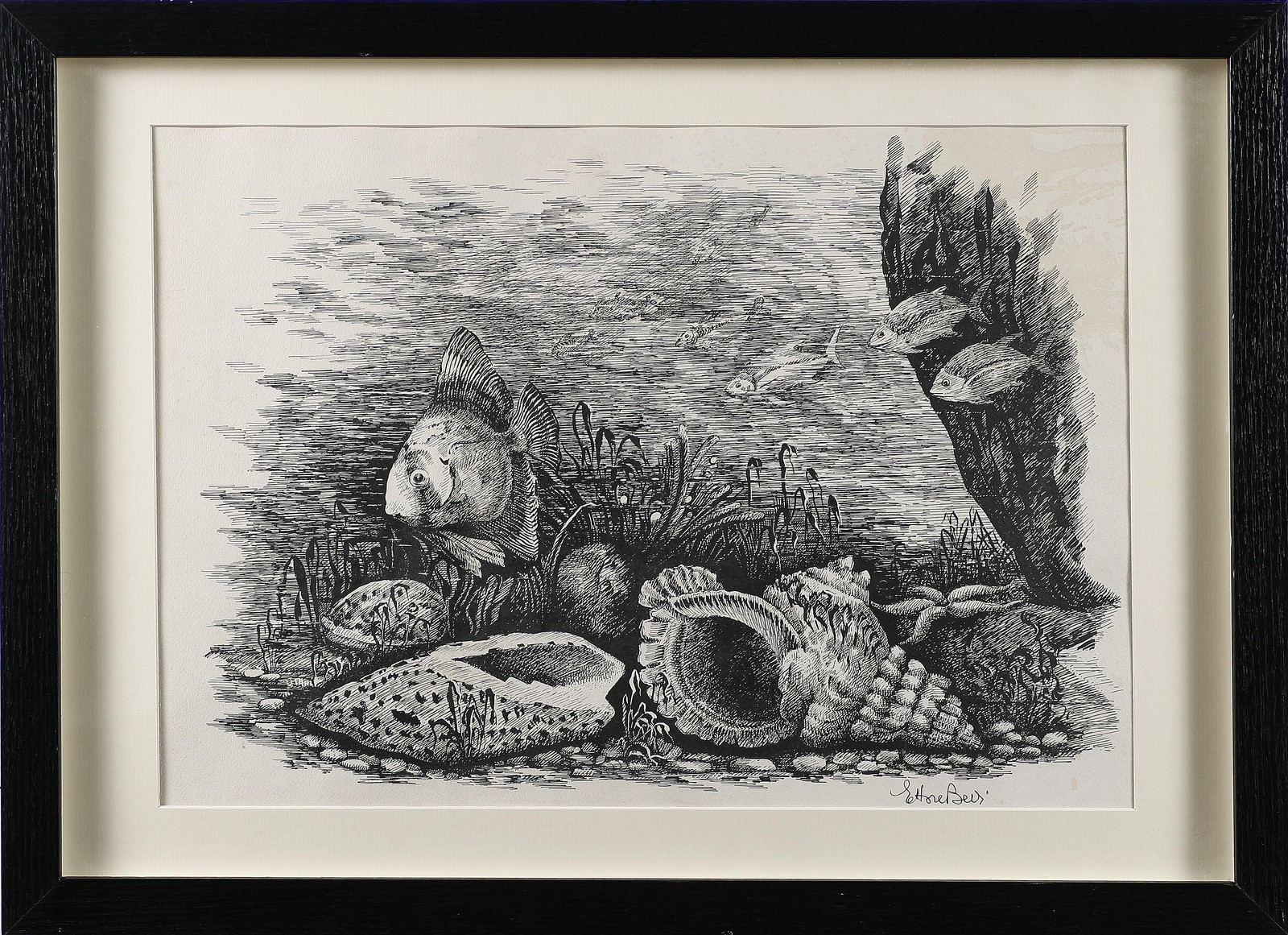 BERTI ETTORE Senza titolo. China su carta. Cm 68,00 x 50,00. Timbro della Galleria Capricorno di Vigevano su fotografia per garanzia e provenienza. Firma in basso a destra, al retro timbro dell'accademia di san Marco. Cornice presente