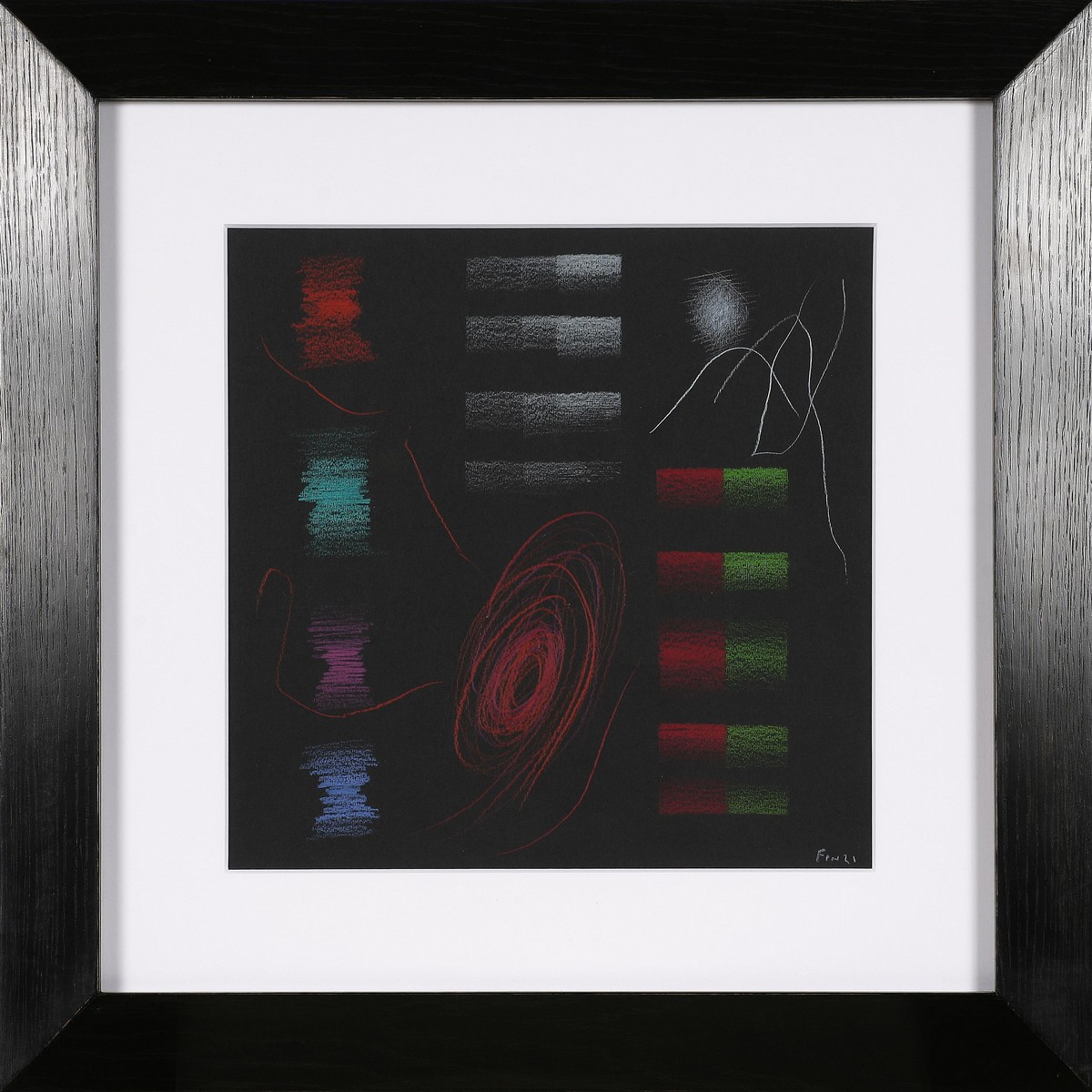 FINZI ENNIO (n. 1931) Senza titolo. Pastelli su carta. Cm 50,00 x 35,00. Firma in basso a destra. Autentica dell'artista su fotografia. Cornice presente