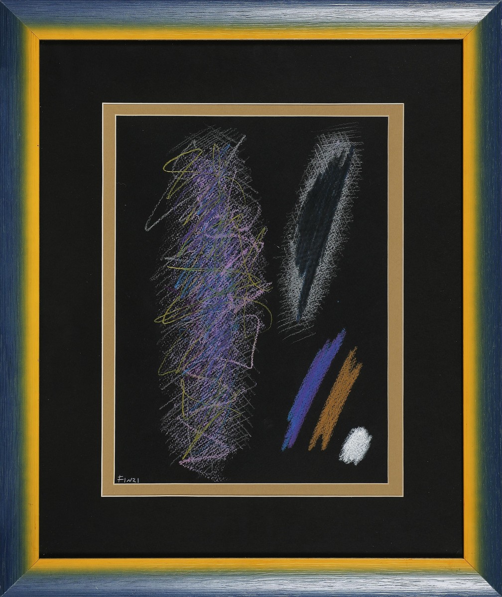 FINZI ENNIO (n. 1931) Senza titolo. Pastelli su carta. Cm 31,00 x 23,00. Firma in basso a sinistra. Autentica dell'artista su fotografia. Cornice presente
