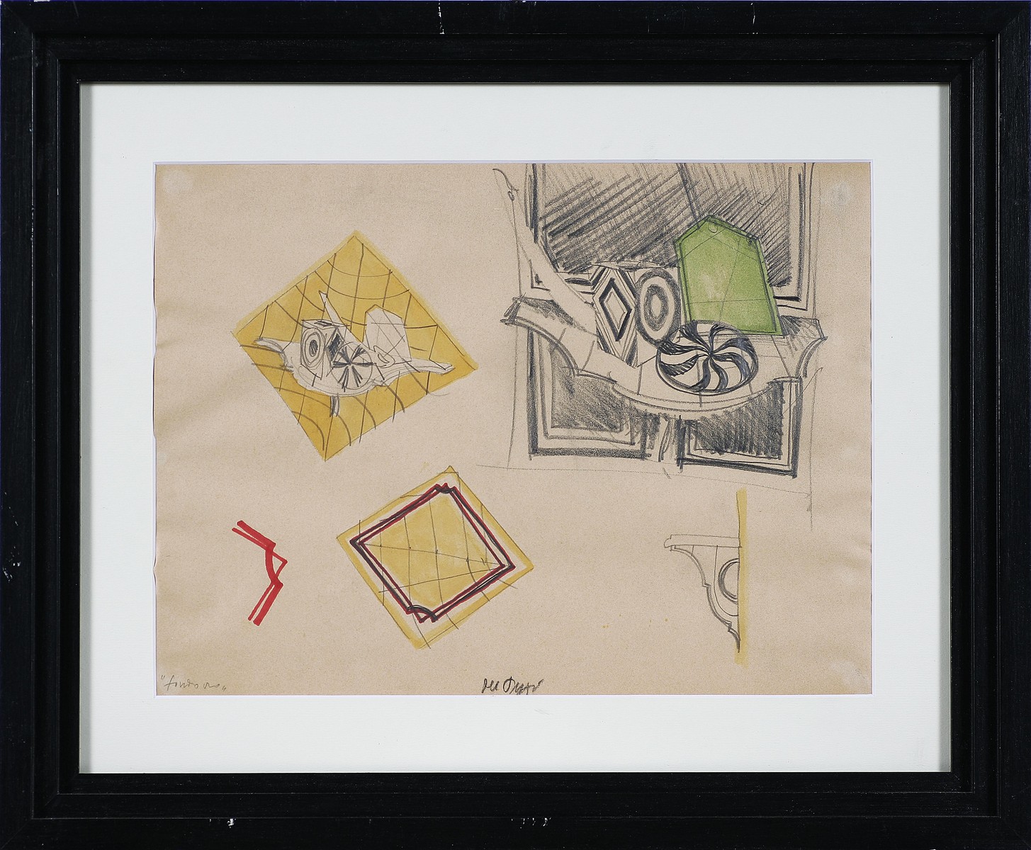 DEL PEZZO LUCIO (n. 1933) Fondo oro. Tecnica mista su carta. Cm 40,00 x 29,00. Firma e titolo in basso a matita. Cornice presente