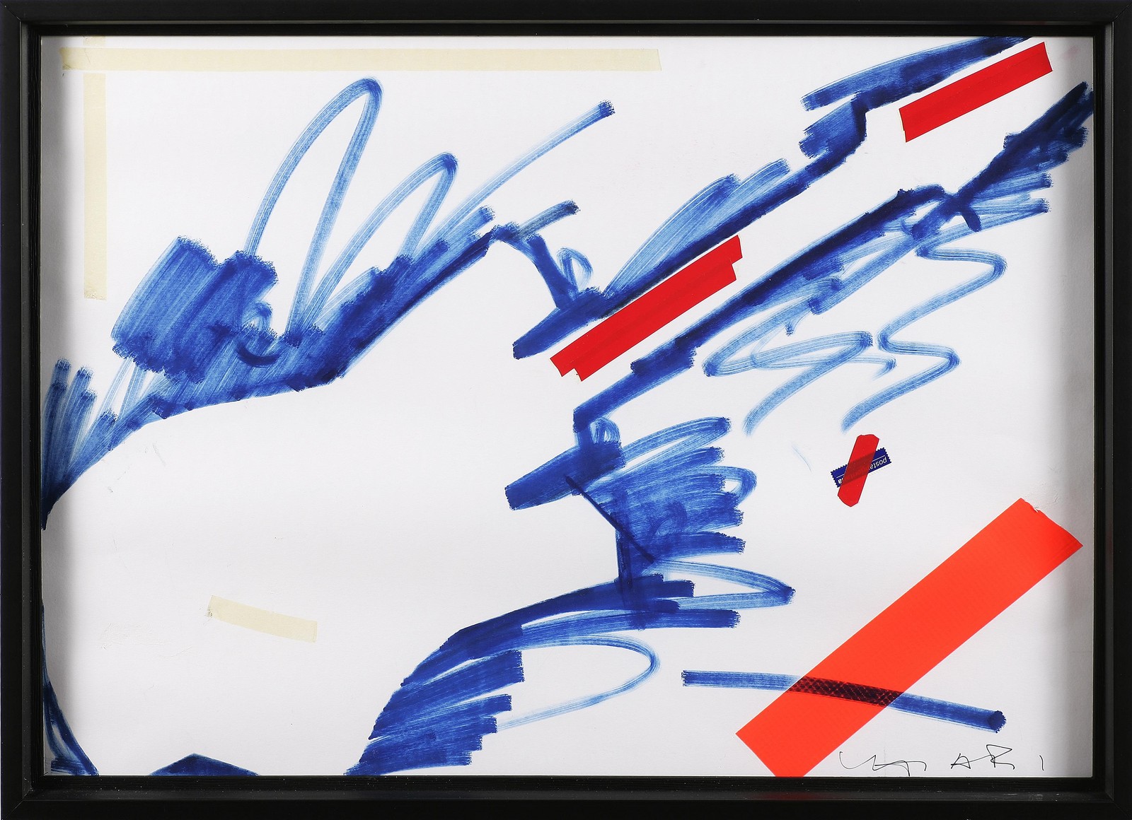 CHIARI GIUSEPPE (1926 - 2007) Chitarra. 2000. Tecnica mista su carta. Cm 70,00 x 50,00. Firma in basso a destra. Autentica dell'Archivio Giuseppe Chiari con relativo numero d'archivio. Cornice presente