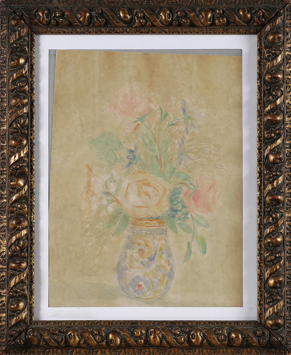 SEMEGHINI PIO (1878 - 1964) Vaso di fiori. Tecnica mista su carta. Cm 32,00 x 43,00. Autentica dell'artista su fotografia. . Cornice presente