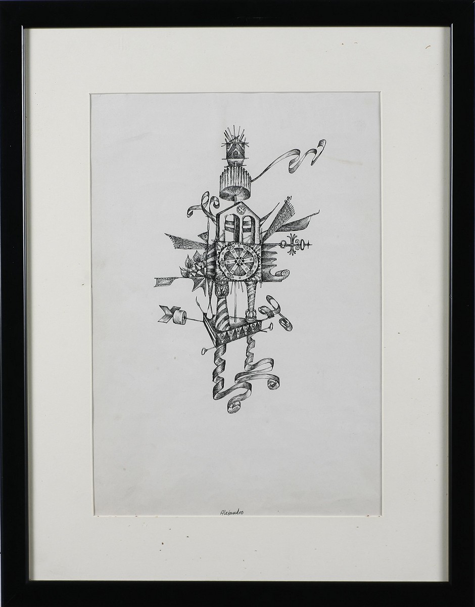 ALEJANDRO JOSE' RAMON (n. 1943) Senza titolo. Biro su carta. Cm 26,00 x 38,00. Firma in basso al centro. Cornice presente