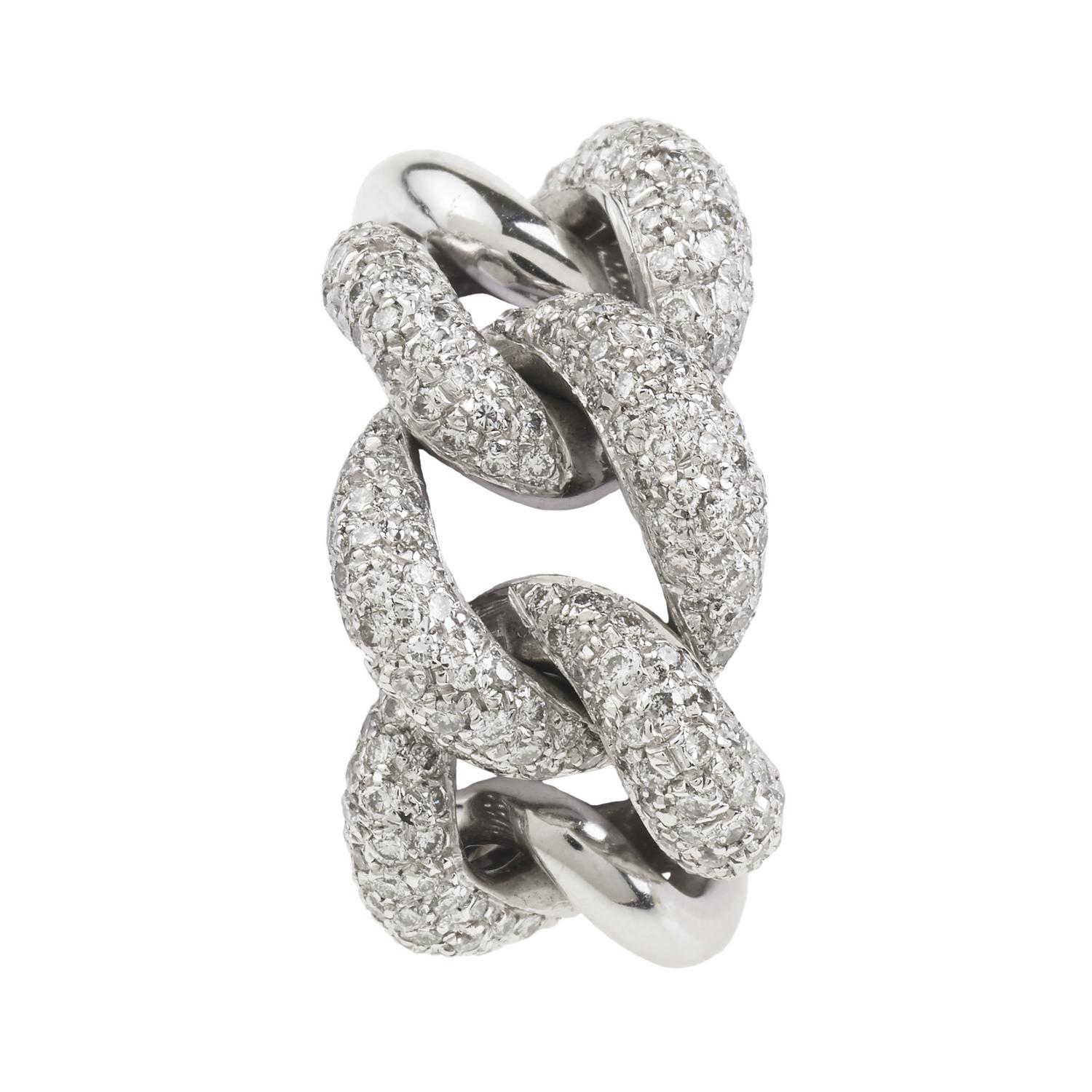 Lotto 50 | ANELLO IN ORO BIANCO E DIAMANTI realizzato a maglia barbazzale impreziosita...