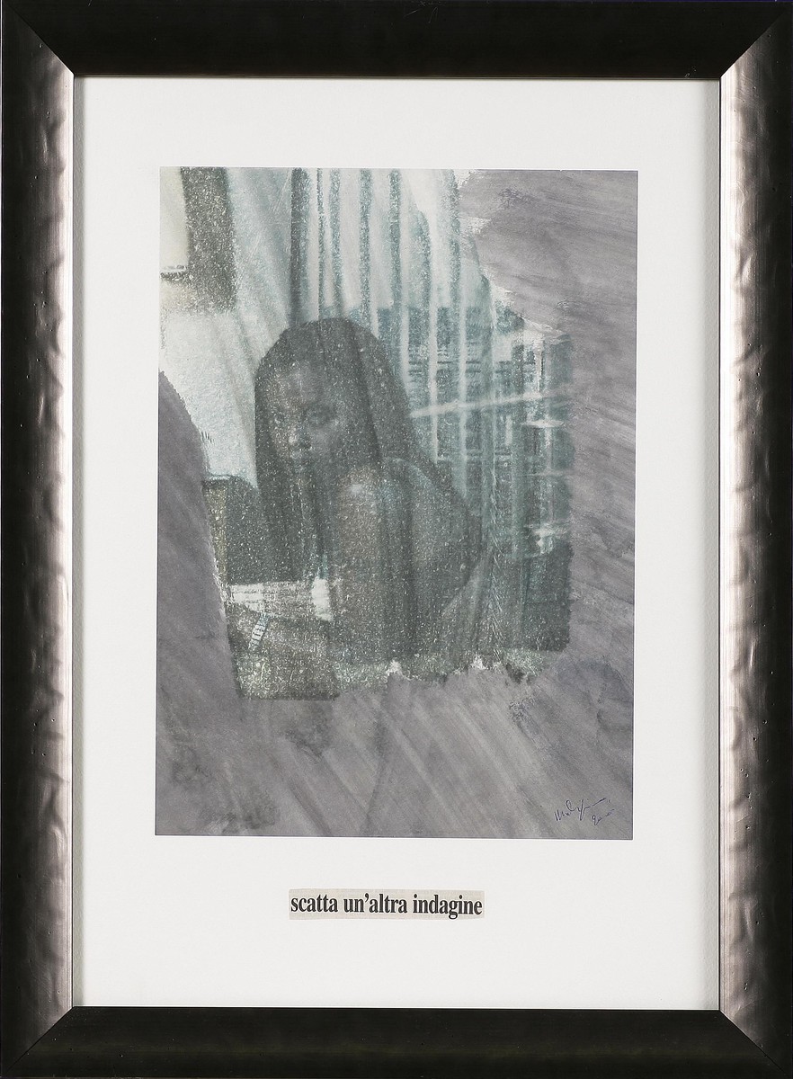 MALIPIERO (n. 1934) Scatta un altra immagine. Collage su carta. Cm 37,00 x 50,00. Firma e anno in basso a destra. Opera pubblicata sul catalogo Generale -Malipiero- vol1, editore Maretti, pag. 35; allegata all'opera copia della pagina di catalogo. Cornice presente