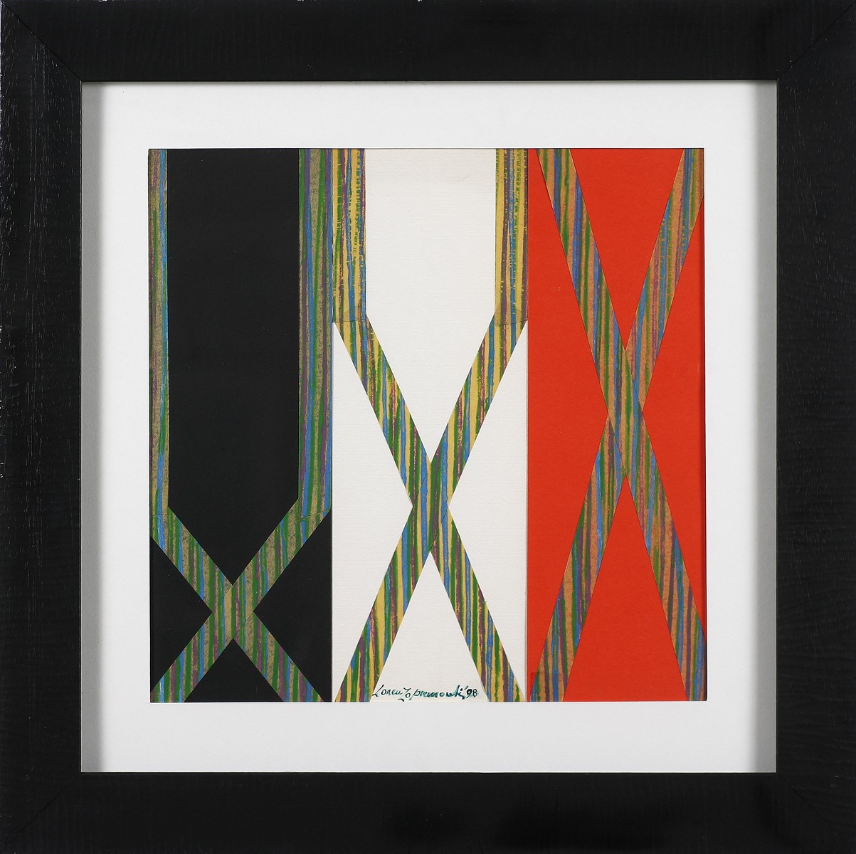 PIEMONTI LORENZO (n. 1935) Accelerazioni. Tecnica mista su cartoncino. Cm 34,50 x 34,50. Firma e anno in basso al centro. Al retro cartiglio dell'Archivio Lorenzo Piemonti. Autentica dell'artista su fotografia con relativo numero d'archivio. Cornice presente