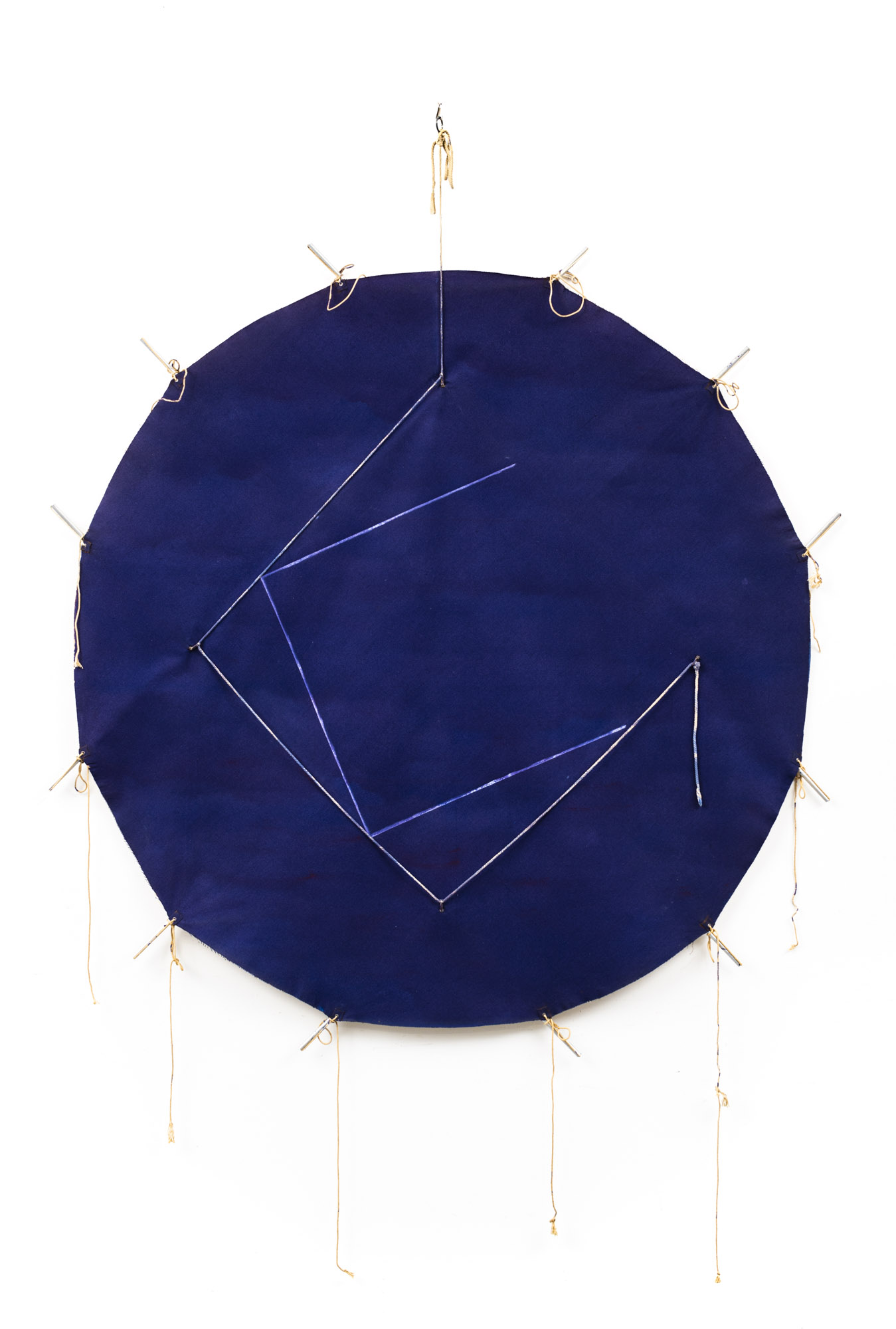 Acrilico su tela, alluminio, corde, diametro cm. 144 (ingombro totale h. cm. 226)