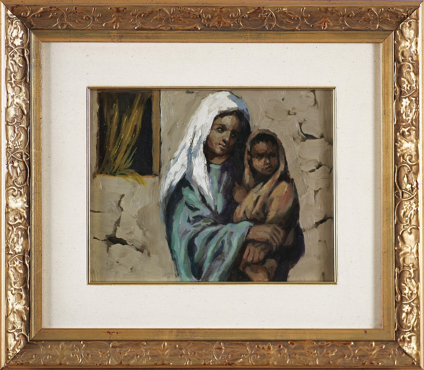 Lotto 593 | ANONIMO Donna con bambino. Olio su tavola. Cm 30,00 x 25,00. . Cornice presente