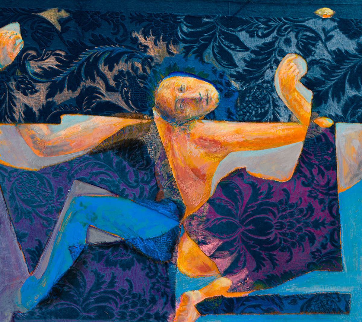 Tecnica mista e applicazioni di velluto su tela intavolata