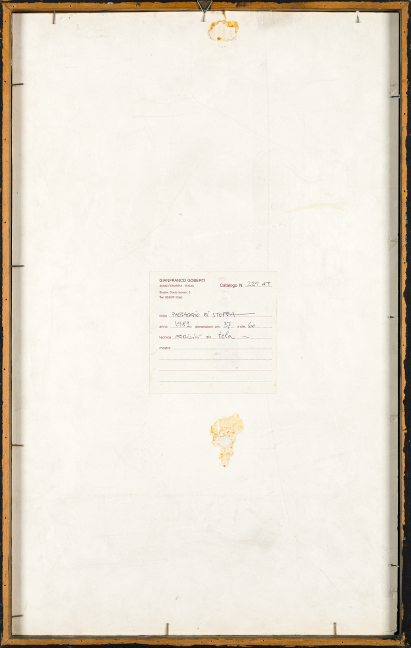 Etichetta dell'Artista con caratteristiche tecniche dell'opera e numero di repertorio al retro