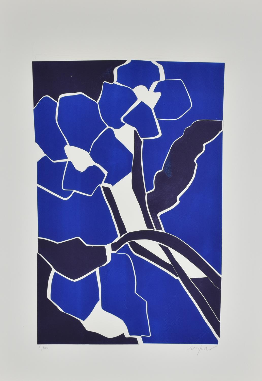 Ugo Nespolo FIORI BLU incisione su carta, battuta cm 51x32,5, su foglio cm...