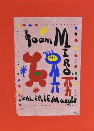 Joan Miro' ESPOSIZIONE D'ARTE litografia su carta di riso (d'apres), cm...