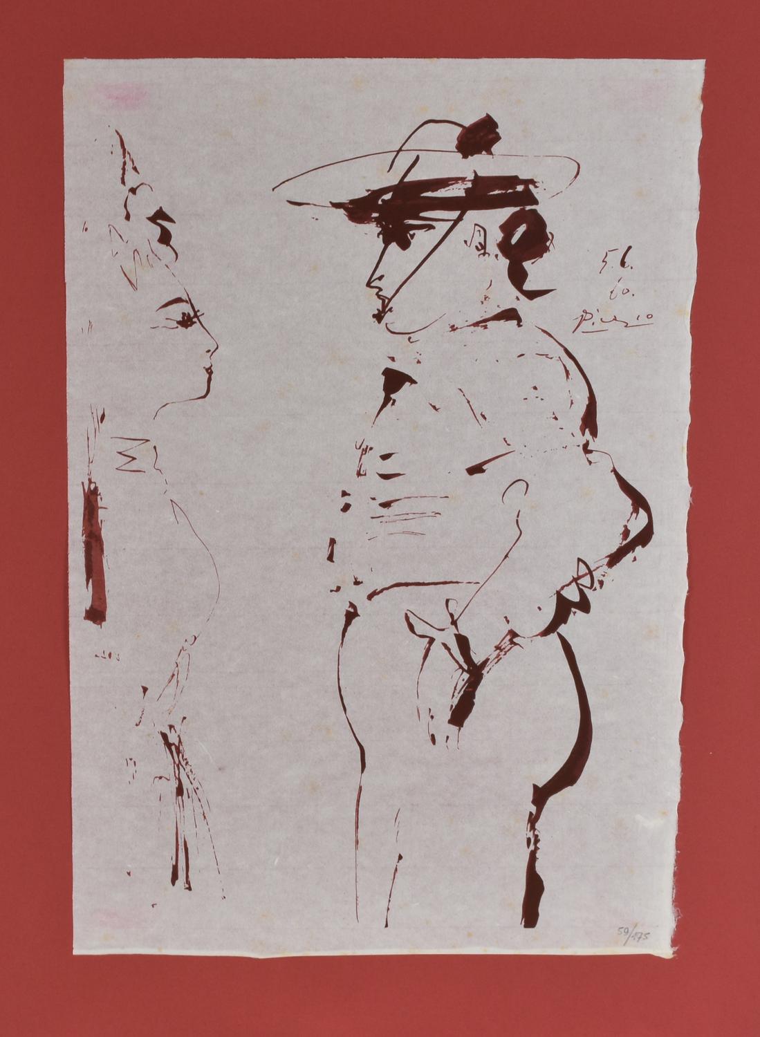 Pablo Picasso PICADOR E RAGAZZA litografia su carta di riso (d'apres), cm...
