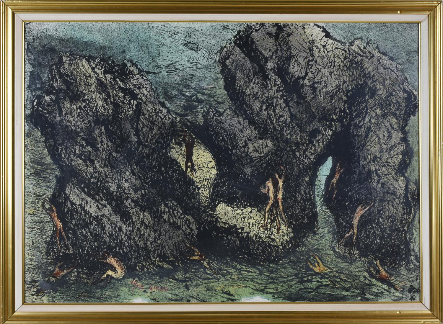 Franco Girosi PAESAGGIO UMANO - BAGNANTI litografia su carta, cm 50x70; es....