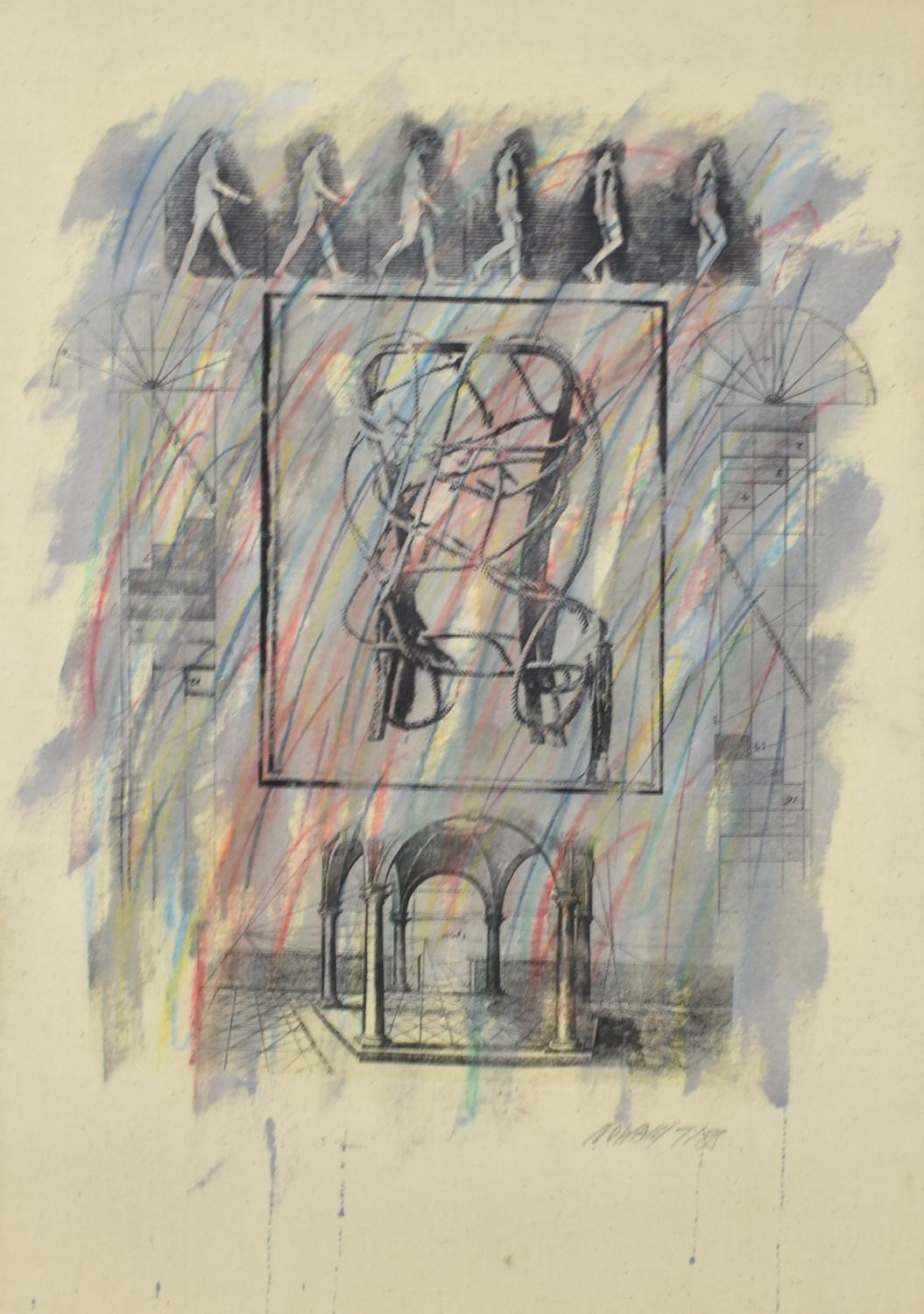 Noriaki Takahashi SEDIA E PROSPETTIVE olio, collage e tecnica mista su tela,...