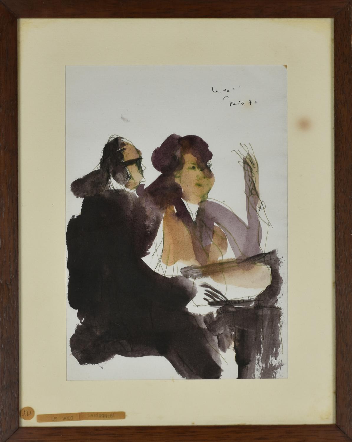 Luigi Le Voci LEZIONE DI CANTO guazzo su carta, cm 24x18 firma e data...
