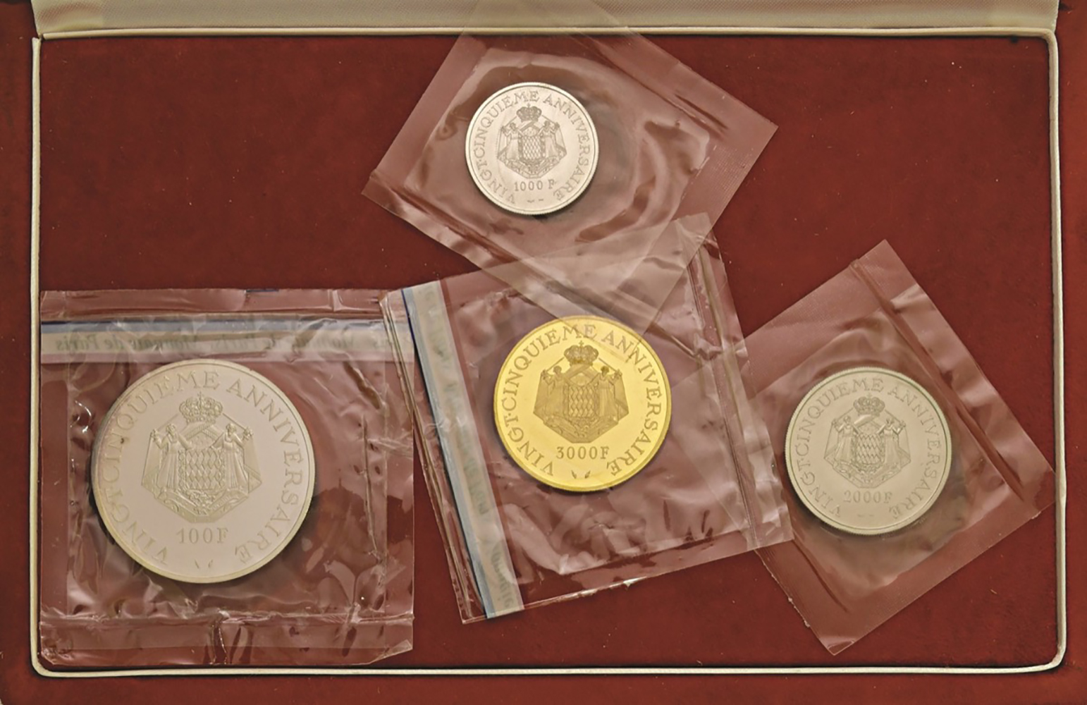 Serie 1974 per il 25° anniversario di regno, 4 valori (3.000 franchi in ORO, 2.000 e1.000 franchi in