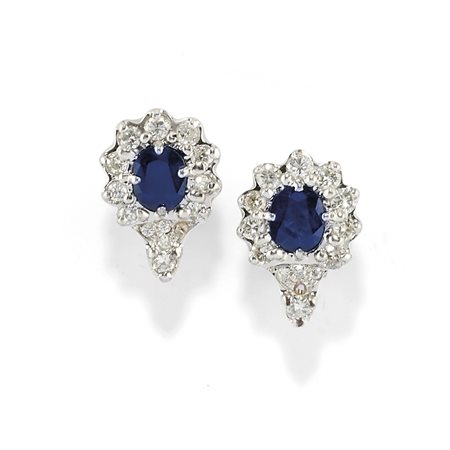 in oro bianco 18K, zaffiri taglio ovale per totale ct 3,50 circa, diamanti taglio brillante per totale ct 1,60 circa, difetti (due diamanti mancanti).