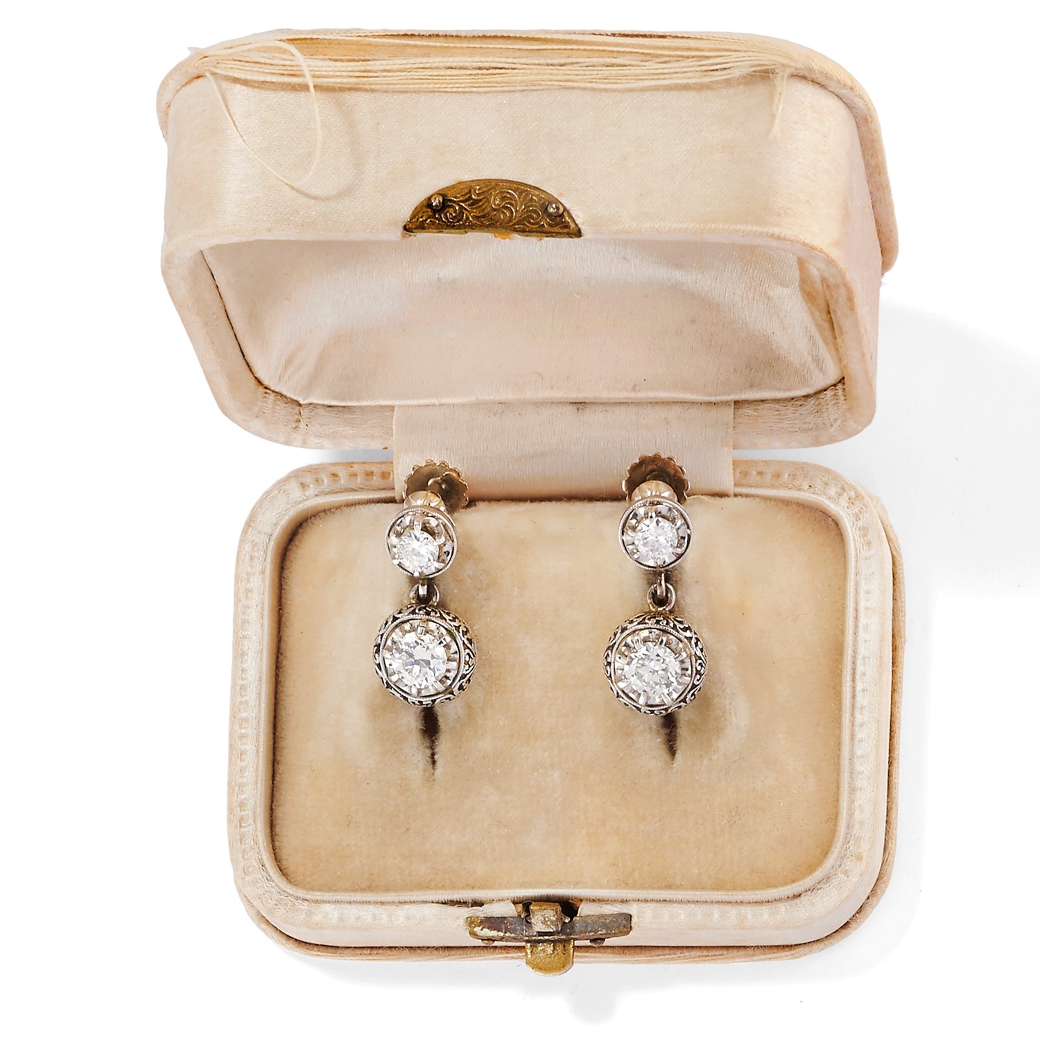 in platino e diamanti taglio vecchio per totale ct 2,00 circa, entro astuccio.