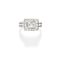 in oro bianco 18K, al centro diamante taglio rettangolare di ct 1,00 circa e diamanti taglio brillante a contorno per totale ct 0,30 circa.