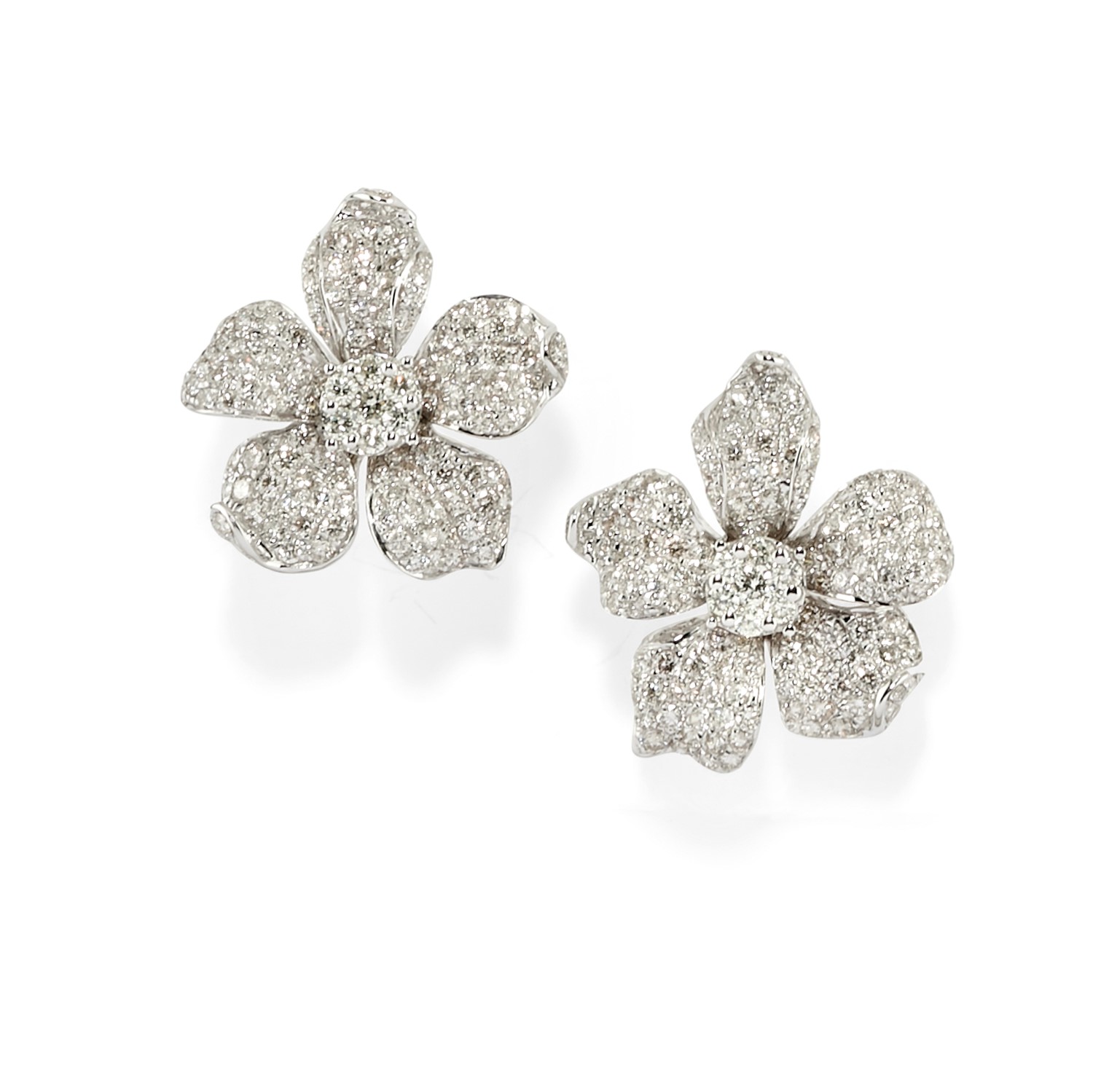 in oro bianco 18K e diamanti taglio brillante per totale ct 4,00 circa, realizzati a fiore.