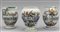 Coppia di versatoi con decorazione in policromia a rocaille a fiori e pellacce su fondo bianco e vaso analogo, Torino sec.XVIII
