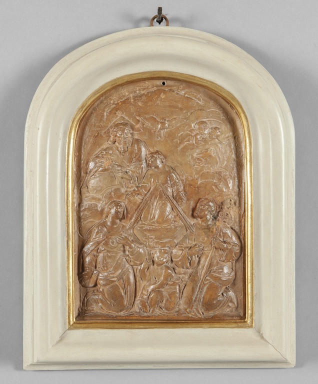 Scuola toscana sec.XVII "Sacra Famiglia con la Trinità" terracotta