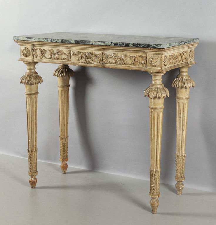 Console Luigi XVI in legno intagliato e laccato avorio, piano in breccia Valpolcevera, Genova fine sec.XVIII