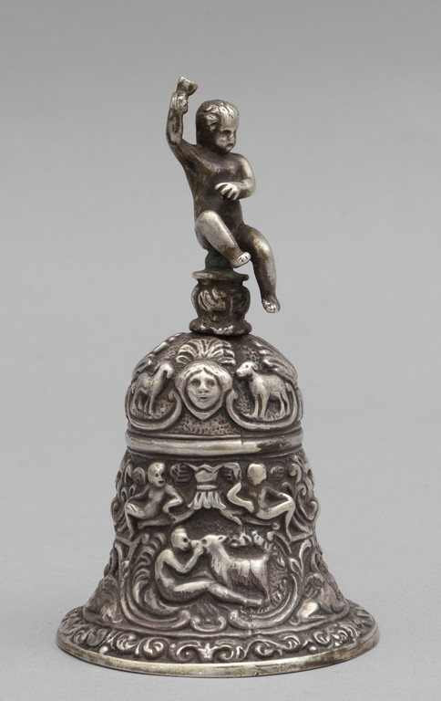Campanello in argento di finemente sbalzato con presa a forma di putto, Roma sec.XVIII