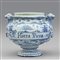 Idria in maioica bianca e blu decorata con paesaggio e scritta "Effe Hiera Picra", con prese a forma di grifoni, marca Stemma, Savona sec.XVIII