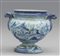 Idria in maiolica bianca e blu con prese a forma di grifoni decorata con paesaggio e figure, scritta "Mitridati", Savona sec.XVIII