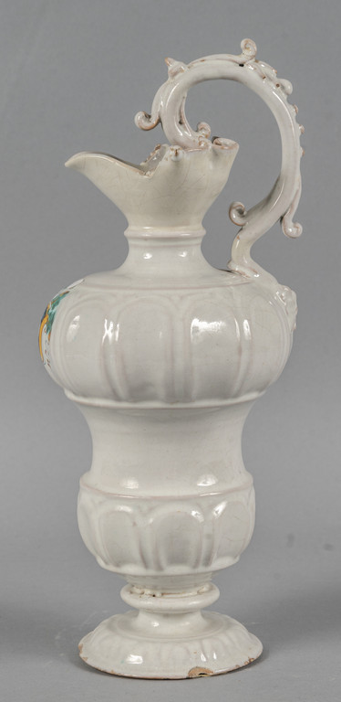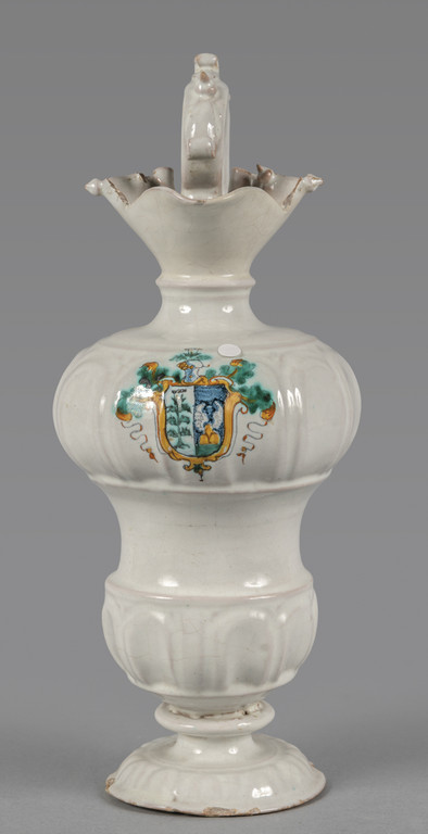 Grande versatoio in maiolica con al centro stemma in policromia, Faenza sec.XVIII