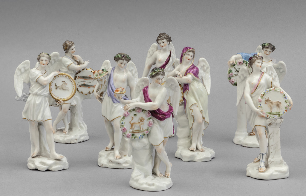 Lotto 0093 | Otto statuine in porcellana policroma di Meissen