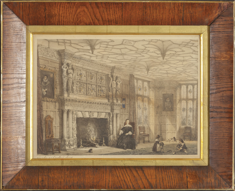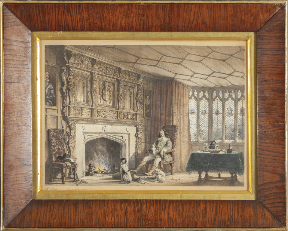 Scuola inglese sec.XIX "Interni di case" quattro stampe acquarellate