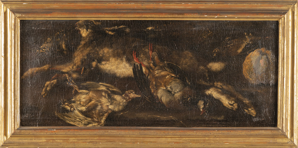 Scuola emiliana sec.XVII "Natura morta con cacciagione" olio