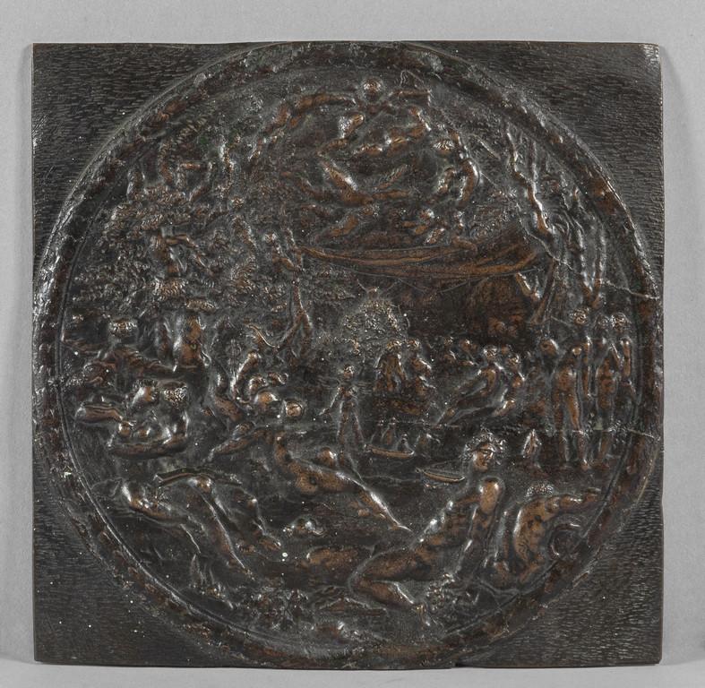Scena mitologica, placca in bronzo a patina scura sec.XVII
