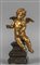Putto, scultura in bronzo dorato poggiante su base in marmo non coeva, Roma sec.XVII
