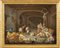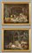 "Interni di stalla animati con figure e animali" coppia di olii, cornice coeva in legno intagliato e dorato