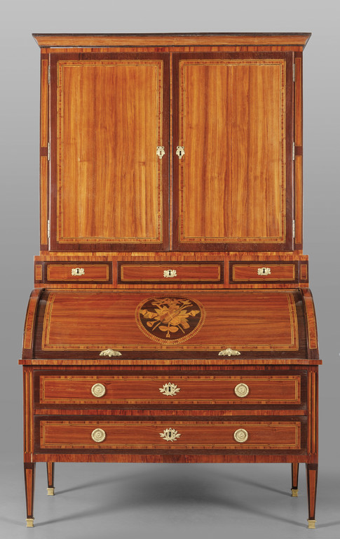 Bureau a cilindro Luigi XVI con alzata, finemente
