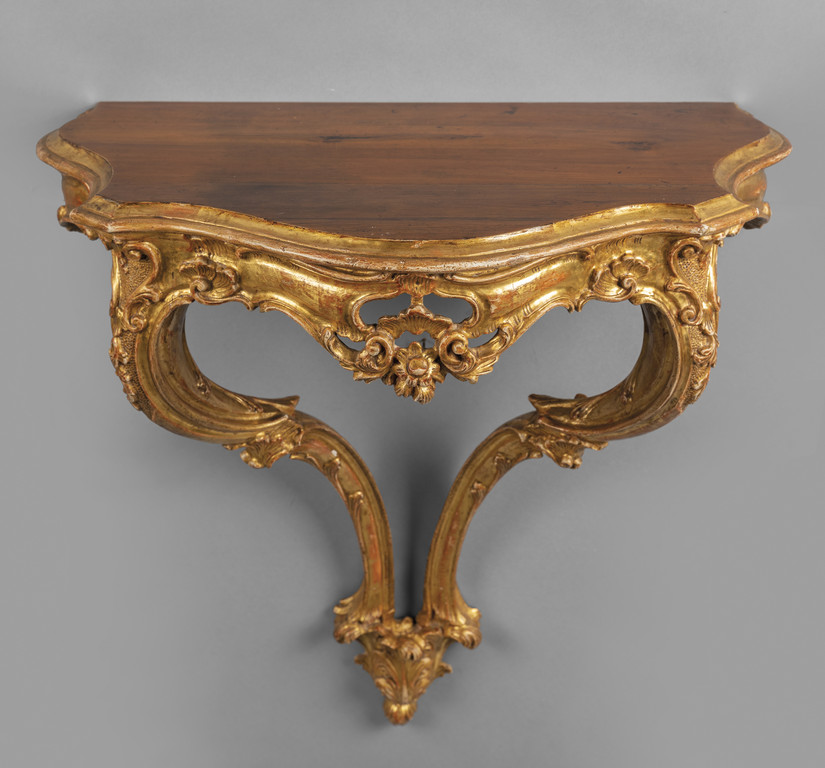 Piccola console a goccia in legno finemente dorato ed intagliato, Veneto sec.XVIII