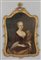 Scuola genovese sec.XVII "Signora con ventaglio" olio di forma sagomata, bella cornice genovese in legno intagliato e dorato