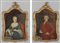 Scuola genovese sec.XVII "Gentiluomo con lettera" e "Gentildonna con fiore" coppia di olii, belle cornici genovese in legno intagliato e dorato di forma sagomata