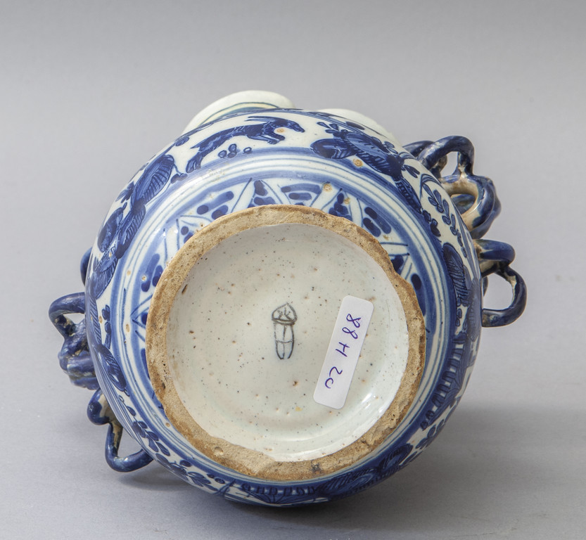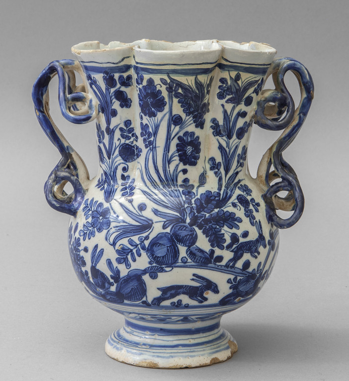Lotto 0260 | Vaso in maiolica bianca e blu, decoro