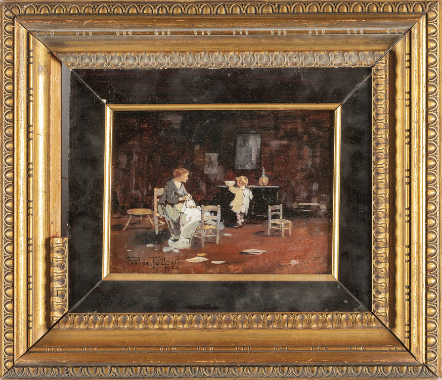 Lotto 0298 | POZZATO PARIDE (-) <br>Mamma con bambino<br>olio