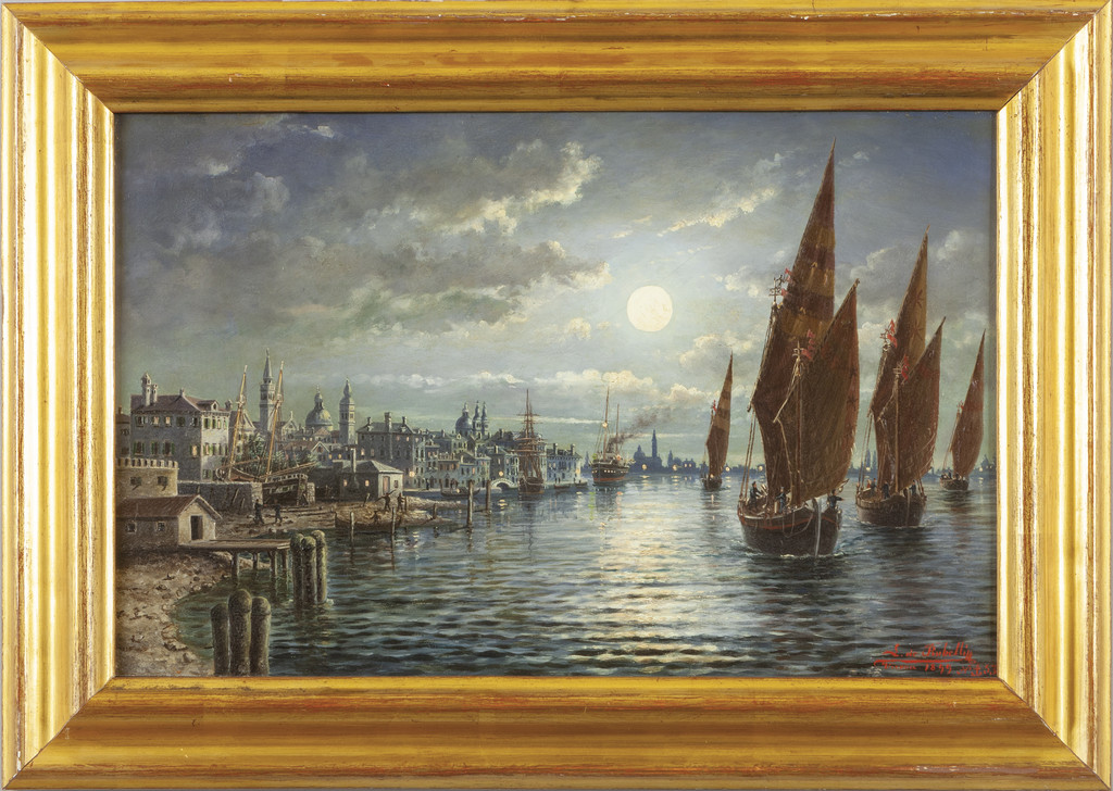 "Veduta di Venezia" olio su tavoletta f.to e d.to in b. a ds. 1899