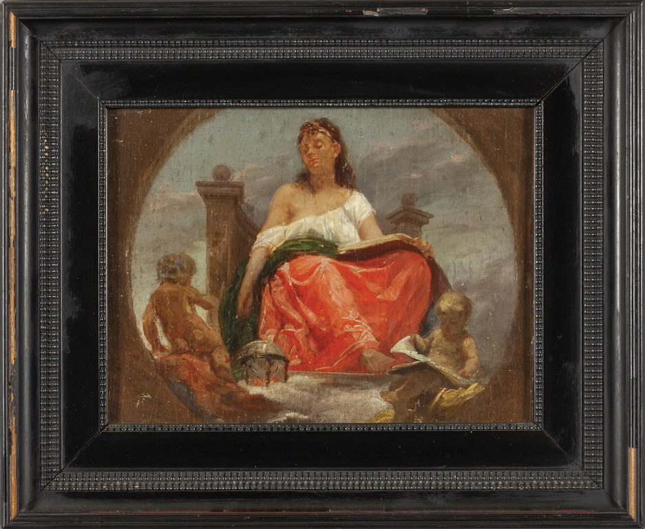 Scuola genovese fine sec.XIX (N.Barabino) "Allegoria" olio su cartone