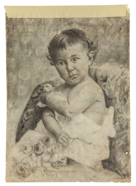 Giovane bambina con fiori, disegno<br>cm. 48x64