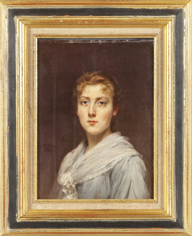 Scuola francese sec.XIX "Ragazza con abito azzurro" olio su tavoletta
