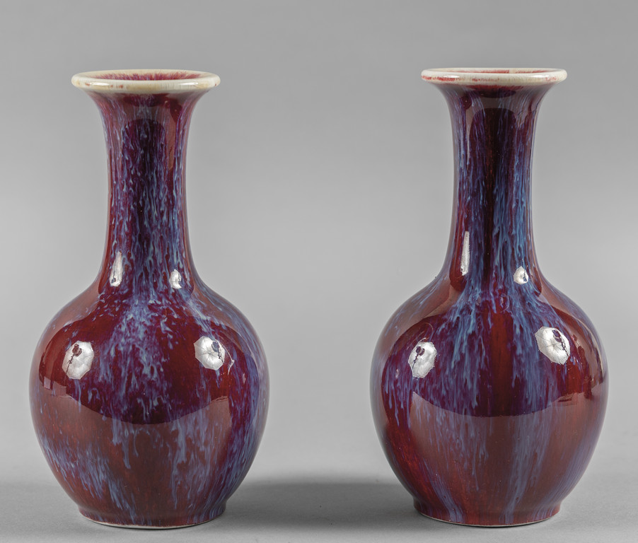 Coppia di vasi in porcellana rossa, Cina sec.XX
